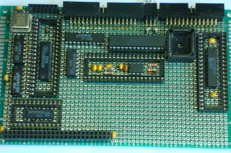 Спаял в два этажа - наверху процессорная часть а внизу контроллер клавиатуры, контроллер флешки и контроллер FDD. Сделал ее с цветом и будет две DOS, причем обе начинаются с адреса Е000.