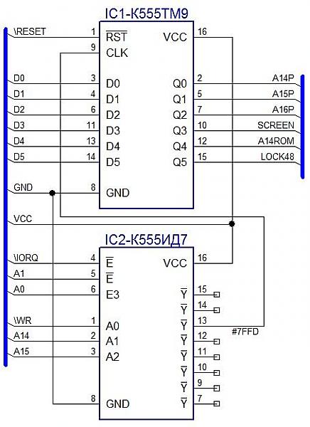 решил попытаться расширить Спесси2007 до 128к. пока все в проводах, но эт пока ). схема тоже пока тока упрощенная - нет защелки 48к и А14_РОМ.