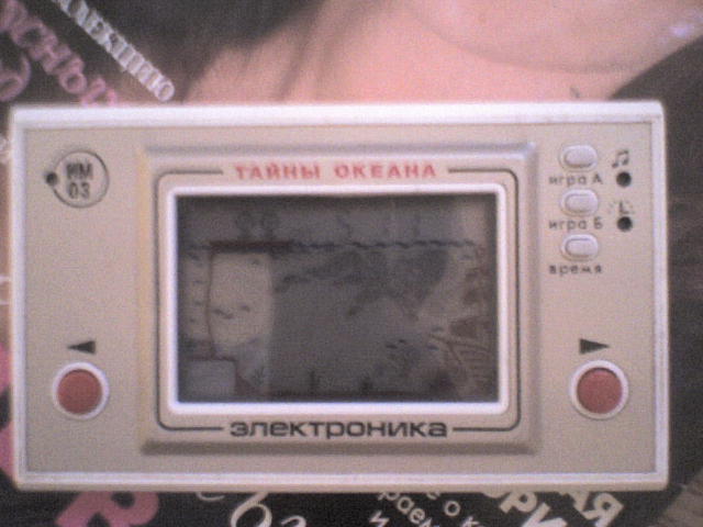 sv, У меня "тайны океана" такая игрушка есть. Целая ( в смысле в неё внутрь ещё ни разу никто не лазил , даже клеймо отк есть), полностью рабочая и чисто визуально... ...чистая!На морде пока царапин и прочих неприятностей не замечено. Экран немножко тусклый, но это из-за полудохлых батареек.