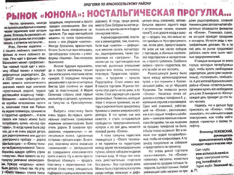 Тема: Статья "Рынок 'Юнона': ностальгическая прогулка"