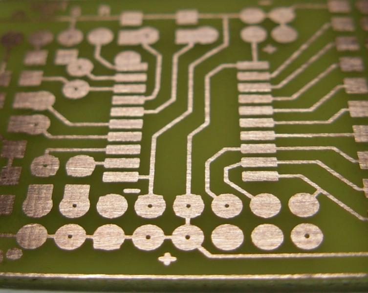 На фото видны вытравленные дорожки толщиной 0,3мм. По этой методике можно делать дорожки и 0,15мм. Только нужно учитывать, что при "катании утюга" дорожки утолщаются на 0,05...0,2мм, это зависит от силы прижатия утюга и жирности печати. Эксперименты вам в помощь!