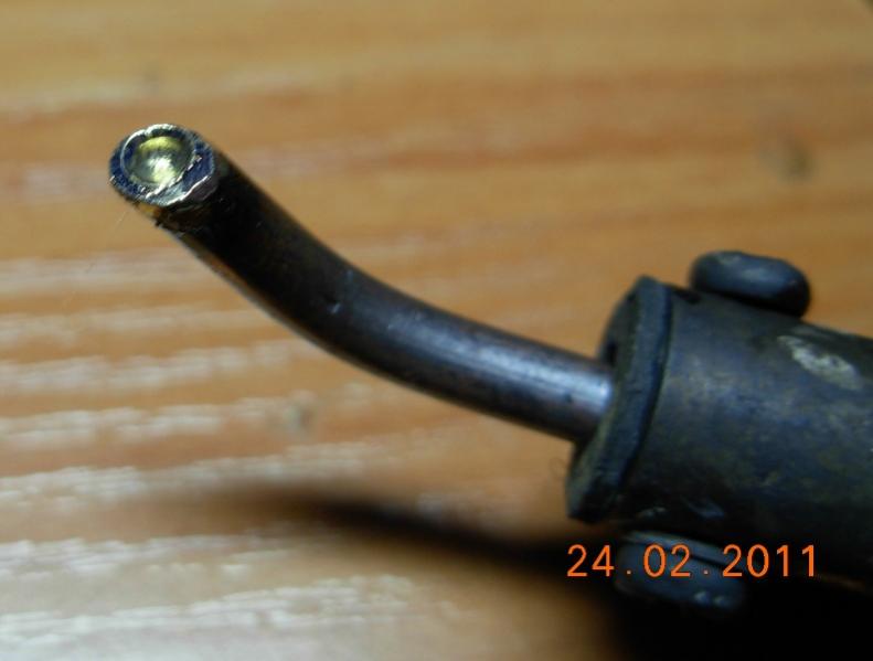 Заточил острие напильником "под откос" и сверлом сделал "дупло".