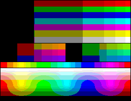 сейчас пересмотрел, вроде бы правильно, если не считать раскладку цветов в палитре, которая как и в моем первом (прямоугольном варианте) не до конца понятно по какой логике разложена т.к. вертикально логика с яркостью на 100% не просматривается, за что еще уцепиться... даже не знаю. в анриле что-то вообще походу не по этой логике нофлик сделан (правда твои вычисления 2005 год, а нофлик анриловский в том виде в котором мы его имеем появился в 2001 и в логику он не попадает или я ее пока не смог понять...), да и еще ты палитру сделать сделал, а я вот что-то спековского варианта найти в той теме не смог - ткни ссылкой пожалуйста, чтобы можно было еще раз перепроверить...