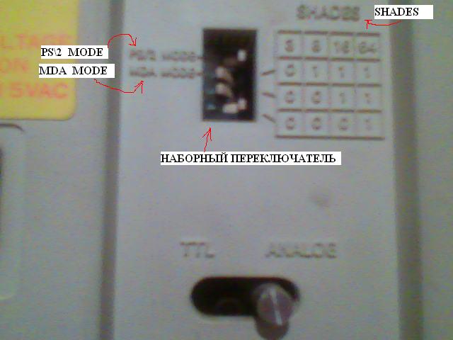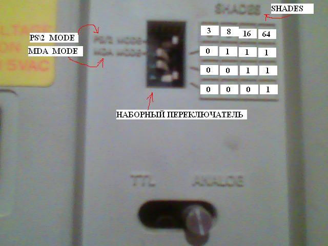 Подскажите пожалуйста, как подключить Ленинград к старому импортному монохромному монитору (марка неизвестна). С тыльной стороны 9-и пиновый разьём и переключатель TTL-Analog. Ещё есть наборный переключатель на 4-е положения.