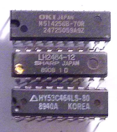 Дык на 4-х, а не на двух. 4 штуки 6464 (2464), есть такие у меня, LH2464, DIP18. Доставаемость, пожалуй, нулевая. Купил случайно ЦГАшную плату на молотке, думал DIP16. Оказались эти.
