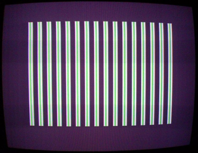 Вообщем после долгого поиска причины, нашел одно замыкание дорожек после пайки в результате чего вылетела микосхема D34 КП16 (согласно схеме Ленинград-2). Мультиплексор был заменен на новый, в итоге получил изображение матраца (включал с вставленным процессорм но без ПЗУ) вот такого вида (рис.1),
