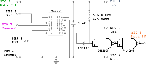 Чёто больно стрёмная схема , ибо таракан делает только TTL->RS232 , а обратно тогда уж нужен таракан на восьмёрку оканчивающийся . А там один RS232 сигнал идёт на TTL вход таракана (и почему он не взрывается), потом опять с таракана сигнал уровня RS232 идёт через диод(я им в таких вещах не доверяю) на атарик . Думаю покрайней мере вход стоит защитить какимнить TTL тараканом (чинить дороже).