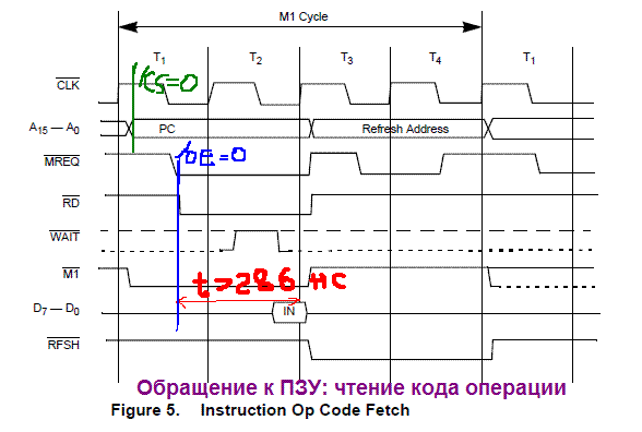 Вот картинка для случая чтения кода операции из ПЗУ.