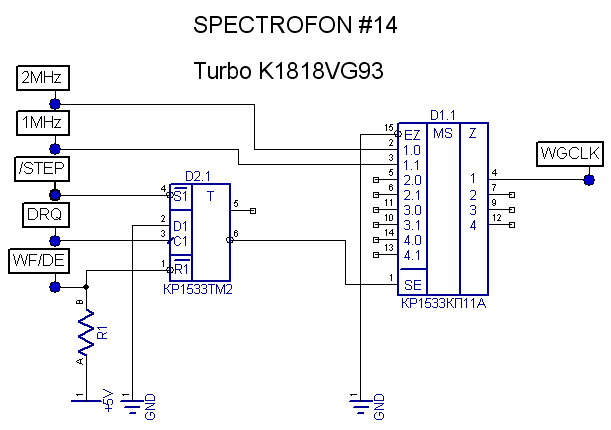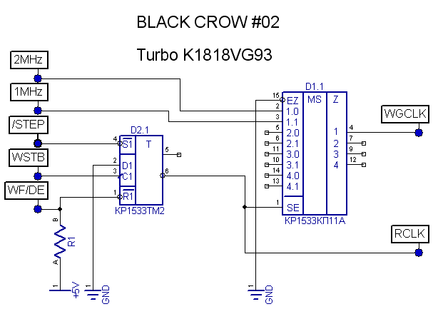 Хочу турбировать ВГ-шку, порывшись в журналах нашел пару вариантов турбирования контроллера дисковода. Судя по схемам - идея одна, да и первоисточник наверное один, но имеются некоторые различия. Одна схемка найдена в журнале Черная ворона №2, вторая в Спектрофоне (№10,12,14), причем там было их несколько версий, это финальная. Различия в том, что в первой схеме переключение турбы происходит по сигналу WSTB (30н ВГ93), а в спектрофоновской - по сигналу DRQ (38н ВГ93) и сказано, что это более верный вариант. Второе различие в том, что в первой схеме управляющий переключением турбы сигнал с ТМ2 подается еще и на RCLK (26н ВГ93), в спектрофоновской версии схемы этого нет. Вот собственно и вопрос - для чего нужен этот сигнал, да и нужен ли, если его нет во второй схеме?
