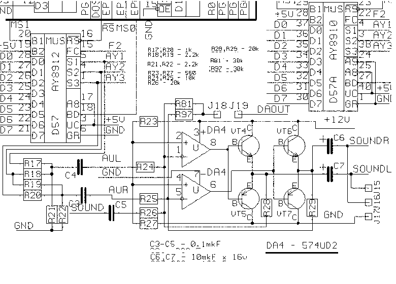 Если это так, то хотелось бы узнать, а DA0-DA7 для YM-ки тоже придется брать из каких-нибудь разных мест на схеме или же DA0-DA7 можно с процессора брать?