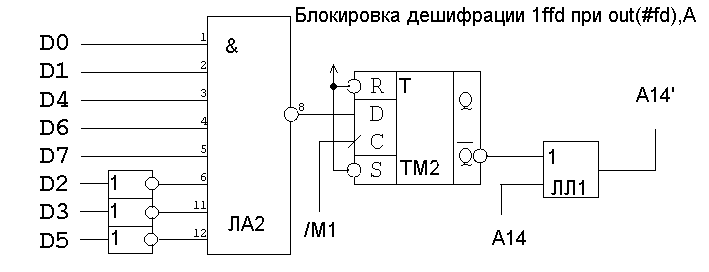 Кстати, посмотрел твою последнюю схему, там управление прямо противоположное тому что ты сказал. Т.е. при записи 1 как раз в Shadow Monitor или Глюк и вывалишся если раскладка банок ПЗУ будет как в Кае/Пенте. Дык что замени на формирователе RAS или /CAS ЛП5 на ЛН1 и сэкономленную ЛП5 вставь на RA15 и подключи к D3#1FFD и готово.