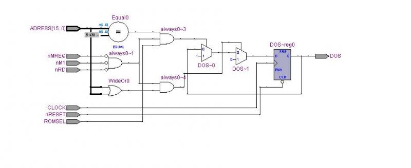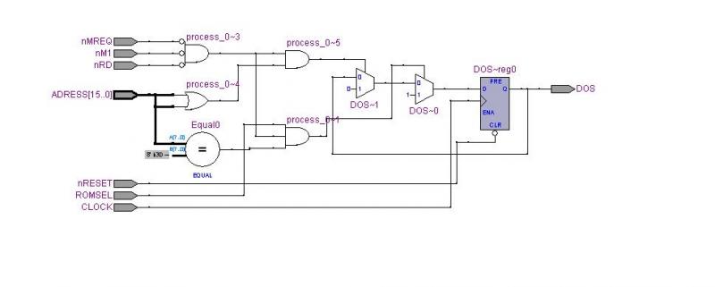 elsif (CLOCK'event and CLOCK = '1') and nM1 = '0' and nRD = '0' and nMREQ = '0' and (ADRESS(15 downto 8) = "00111101") and ROMSEL = '1' then DOS <= '1';