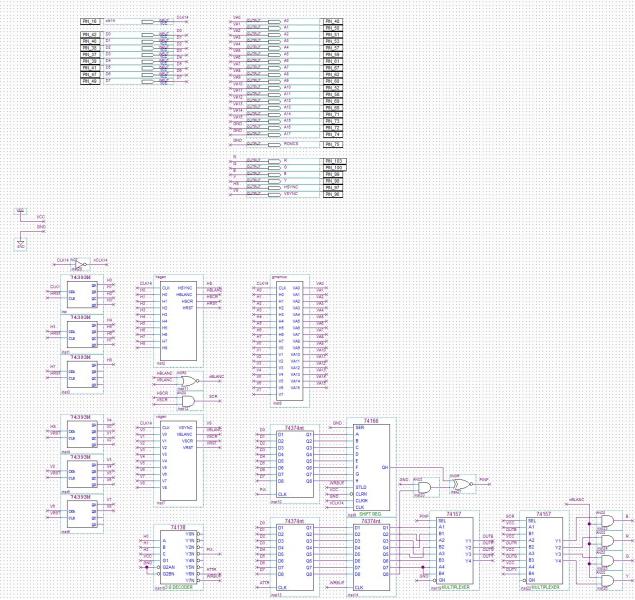 опишу в общем весь проект - смесь схемного ввода с кусками на ВХДЛ, пытался на чистом ВХДЛ, но начинаю путаться, мне схемный немного ближе, визуально более понятен, да и та часть что сдвигает пиксели (сдвиговый регистр пикселей) так и не поддается мне....