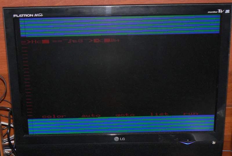 Это что-же получается, что там резонатор другой стоит? По схеме (Суры) - 20 МГц, а если при выполнении из ПЗУ ничего не тормозит и тактовая 2 МГц, то получается, что стоит 16 МГц. Может поэтому изображение вытянутое? А кадровую частоту они подобрали путём специальных значений в ПЗУ (РТ2). Счётчик знакомест там хитрый, загружается каким-то числом, считает до определённого места (задано в ПЗУ) и снова загружается. По схеме, загружается числом 56 (или 54 в зависимости от режима 40/32), судя по всему переходит через максимум 64, после чего на выходах оказывается адрес и считает до какого-то числа (конец или начало СГИ).