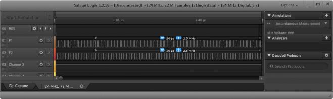 Что касается рабочей частоты, лог. анализатор дал следующие F1, F2 (см. файл).