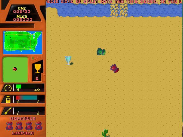 Кроме полной игры (найти и выиграть 8 кубков, не разбив всех 4-х машин) есть несколько встроенных мини-игр - поиск штата, или его столицы - для знатоков географии страны. Игра сама может считаться обучающей - на экране постоянно отображается проезжаемый штат и его столица. А если в пылу гонки выдастся свободное время, то в бегущей строке можно почитать про его "достопримечательности".